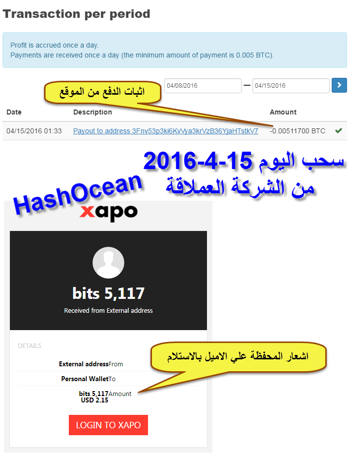 رد: افضل موقع hashocean لتعدين البيتكوين وافضل ربح مع الاثبات والشرح . . السلام عليكم ورحمة الله وبركاته اللهم صل على محمد وعلى آله وصحبه أجمعين اثبات دفع جديد بتاريخ اليوم 2016/4/12 من افضل شركة لتعدين البيتكوين علي الاطلاق Hashocean انصح الجميع بالاستثمار بها فهي في منتهي الصدق تم بحمد الله تعالي استثمار 216$ دولار بمعني اشتريت 660 KH/s حتي يكون الربح اليومي مدي الحياة 2.03$ بدون عمل شئ وبدون تعب ويمكن مضاعفة الربح بمضاعفة مبلغ شراء الطاقة الشركة مسجلة حتي 2025 وتعمل من 2012 بدون اي مشاكل الاثبات بالصورة التالية http://irba7.com/upload/do.php?img=4585 بالتوفيق للجميع يا رب . . |
