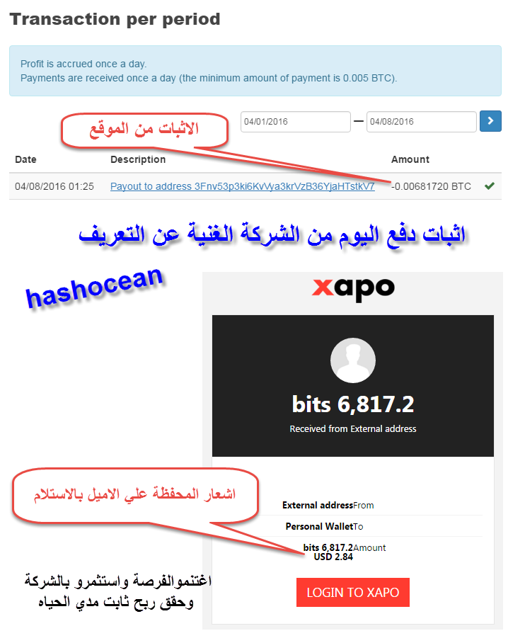رد: افضل موقع hashocean لتعدين البيتكوين وافضل ربح مع الاثبات والشرح . . اثبات دفع اليوم 2016/4/28 من افضل شركة لتعدين البيتكوين علي الاطلاق Hashocean http://irba7.com/upload/do.php?img=4619 بالتوفيق للجميع يا رب . . |