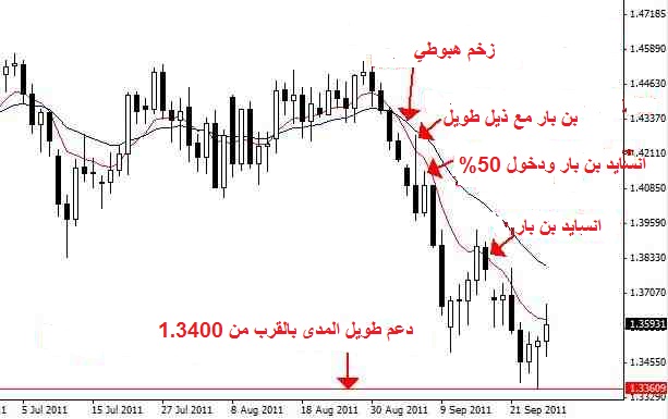 استراتيجيات حركة السعر و تقلبات سوق الفوركس تقلبات السوق من الكلمات التي تسبب المخاوف للعديد من المتداولين داخل سوق الفوركس، ولكن بالنسبة لمن يقوم بالتداول باستخدام حركة السعر، فإن الأمر مختلف، حيث يبحث هؤلاء المستثمرين عن هذه التقلبات ويقومون بتتبعها، لأن استراتيجية حركة السعر تكون فعالة أكثر في ظل تقلبات السوق. وبسبب التقلبات التي تشهدها الأسواق مؤخرا، فأنا أريد أن استغل درس اليوم لإلقاء الضوء على بعض إعدادات حركة السعر التي نجحت معي في تحقيق مكاسب جيدة, وبعض الإعدادات التي لم تنجح معي أيضا، بالإضافة إلى شرح السبب وراء نجاح إعدادات حركة السعر. EURUSD- شمعة بن بار طويلة الذيل مع دخول 50% وانسايد بارقبل أن نبدأ درس اليوم أريد أن أؤكد على أن كل الأمثلة التي يتضمنها مقال اليوم هي رسوم بيانية يومية، حيث إنني دائما أوصي المتداولين بالتركيز على الرسوم البيانية اليومية في التداول الخاص بهم. أمثلة للتداول باستخدام حركة السعر: تشكل البن بار طويل الذيل للزوج يورو مقابل دولار أمريكي يوم 6 سبتمبر. استراتيجية البن بار للتداول هذه لها عدد من الأمور التي سوف أسلط الضوء عليها فيما يلي: GBPUSD- بن بار وانسايد بن بار*البن بار المتكون ذو ذيل طويل، هذا يعني أن الذيل يظهر رفض قوي جدا للرفض من الأسعار الأعلى، وكان أيضا متمشيا مع زخم هبوطي جديد. *إغلاق البن بار كان أقل من الإفتتاح وبالقرب من قاع البن بار، وهذا مؤشر آخر على قوة رفض الأسعار الأعلى أو ارتفاع الأسعار. *وكما نعلم بشأن البن بار طويل الذيل مثل البن بار هذه، فإن فرصة دخول 50% قدمت نفسها في اليوم التالي مع تشكل انسايد بن بار.ٍ هذا يسمح بالحصول على نقاط وقف قريبة جدا ونسبة المخاطر للربح عالية. أنا شخصيا حصلت على ربح 3 مرات المخاطر باستخدام إعداد حركة السعر هذا. http://irba7.com/upload/do.php?img=2205 في يوم 8 سبتمبر تشكل بن بار للزوج جنيه إسترليني مقابل دولار أمريكي، وفي يوم 16 و20 سبتمبر تكون انسايد بن بار. جميع هذه الإعدادات كانت مع الزخم الهبوطي اليومي الذي تكون مؤخرا. • الاتجاه كان هبوطي بالفعل عندما تكون البن بار يوم 8 سبتمبر، وكما نرى في الرسم البياني التالي، ومع تكون البن بار، كان هذا الإعدادات مع زخم المدى القريب على الرسم البياني اليومي. • البن بار نفسه كان واضحا وكان له رأس وذيل واضحان، وأظهر رفضا واضحا لمستوى المقاومة الديناميكية. وظهر إمكانيات للحصول على مكافأة محتملة كبيرة مقابل الخسارة. • بعد ذلك، كان لدينا اثنين من إعدادات الانسايد بن بار بالقرب من المستوى 1.5775 في 16 و20 سبتمبر. • استراتيجيات الانسايد بن بار هذه كانت مع الزخم الهبوطي المهيمن على الرسم البياني اليومي، وقدم نسب ممتازة للربح إلى المخاطرة لإعادة الإنضمام إلى الاتجاه الهبوطي. وكما نرى، فكلاهما حققوا نتائج رائعة جدا. الإنسايد بن بار تكون أفضل مع الأسواق واضحة الاتجاه. http://irba7.com/upload/do.php?img=2206 في يوم 14 و15 سبتمبر، تكون اثنين بن بار بصورة متتالية للزوج دولار أسترالي مقابل دولار أمريكي، وتكون أيضا بن بار زائف. اعداد حركة السعر هذا كان ضد الاتجاه ولكنه لايزال ساري المفعول بحكم تكوينه بوضوح وموقعه من منطقة الدعم 1.0175-1.0200, والذي كان مستوى دعم على المدى الطويل. *البن بار الأول الذي تشكل يوم 14 أنهي تشكيل البن بار الزائف، والبن بار الثاني أعطى لنا سببا قويا لأخذ مركز الاتجاه المضاد بعين الاعتبار بسبب تعريفه القوي وحقيقة أن لدينا 2 بن بار على التالي. * يمكننا أن نرى أن السعر ارتفع لأعلى قبل أن يتراجع مرة أخرى تمشيا مع الاتجاه السائد. * هذا الاعداد على الأرجح قد أسفر عن خسارة لمن قام بتداوله لأنه لم يتحرك كثيرا ليحقق أرباحا قبل أن يتراجع. ليست كل استراتيجية حركة سعر صالحة لتحقيق الربح، وهذا مثال واضح على ذلك. وهذا السبب في أنه يجب علينا دائما أن نقوم بممارسة إدارة الأموال في الفوركس بشكل صحيح وأن نتحكم في مشاعرنا عندما نقوم بالتداول. http://irba7.com/upload/do.php?img=2207 |