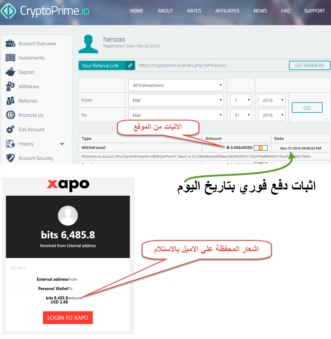 رد: شركة cryptoprime لاستثمار البيتكوين مع اثبات الدفع والشرح تم السحب اليوم وفوري الاثبات بالصورة التالية http://store1.up-00.com/2016-03/145805453699181.png بالتوفيق للجميع |