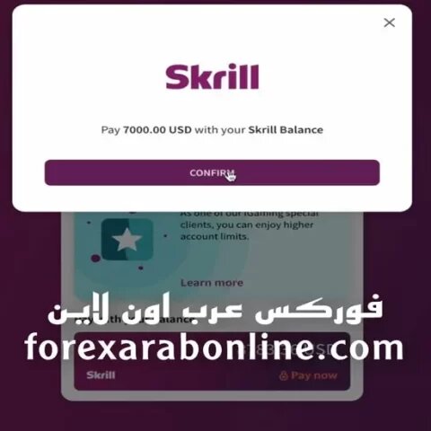 الإيداع في exness بإستخدام بنك skrill تجربة عملية بالفيديو الإيداع في exness بإستخدام بنك skrill يتم في أقل من دقيقة ويظهر مبلغ الإيداع في حسابك في ثواني معدودة شرحنا سابقا بالفيديو كيفية السحب من اكسنس إلى بنك skrill ومن خلال حسابي الخاص ونقدم في هذه المقالة كيفية الإيداع في حساب التداول في شركة اكسنس عن طريق بنك سكريل طريقة الإيداع في exness بإستخدام بنك skrill قبل كل شيء ستجد في هذا القسم كل ما تريد معرفته عن شركة اكسنس شرح بالفيديو والصور لكل سؤال يخطر علي بالك. كذلك ستجد هنا كيفية فتح حساب تداول إسلامي والتحقق من الحساب كاملا في شركة exness. قم بتسجيل الدخول إلى مساحتك الشخصية في شركة اكسنس ثم قم بالضغط علي كلمة الإيداع من القائمة الجانبية. ثم قم بالضغط على ايقونة skrill من قائمة الخيارات في صفحة وسائل الإيداع كما في الصورة التالية. https://irba7.com/upload/do.php?img=5399 اختار الحساب الذي ترغب في إيداع الأموال فيه كذلك اكتب المبلغ مع مراعاة أن الحد الأدنى هو 10 دولار والحد الأقصى هو 100 ألف دولار في العملية الواحدة ثم اضغط متابعة كما في الصورة التالية. https://irba7.com/upload/do.php?img=5400 بعد ذلك تنتقل إلى صفحة مراجعة عملية الإيداع ثم قم بالضغط علي ايقونة تأكيد. عندها تنقلك الشركة الي حسابك في سكريل عن طريق بوابة الدفع الخاصة بالشركة لإكمال عملية الدفع ، اضغط على CONFIRM كما في الصورة التالية. https://irba7.com/upload/do.php?img=5401 بعدها اضغط تأكيد ستجد ان سكريل يظهر لك نجاح عملية الدفع Payment Successful. بعد ذلك قم بعدها بالضغط علي العودة إلي التاجر Return to merchant كما في الصورة التالية. https://irba7.com/upload/do.php?img=5402 يحولك بنك سكريل إلى شركة اكسنس صفحة معالجة العملية بعد ذلك اضغط على حساباتي ستجد مبلغ الإيداع في حسابك كما في الصورة التالية. https://irba7.com/upload/do.php?img=5403 بذلك تمت المعاملة وهي قيد المعالجة وفي خلال ثواني يصبح المبلغ في حساب التداول. فتح حساب اسلامي مع شركة EXNESS قناة الموقع على اليوتيوب https://youtube.com/@ForexArabOnline قناة الموقع على Tiktok https://www.tiktok.com/@forexarabonline فيديو كيفية الإيداع في exness بإستخدام بنك skrill https://www.youtube.com/watch?v=SbPwPmqEPWY |
