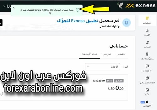 كيفية استعادة حسابات التداول من الأرشفة في شركة exness شرح بالفيديو والصور عن كيفية استعادة حسابات التداول من الأرشفة في شركة exness في ثواني معدودة من المساحة الشخصية للمتداول. وهذه الطريقة ناجحة 100٪ ويظهر الحساب الذي تم استعادته ضمن الحسابات الحقيقية المفعّلة في المساحة الشخصية للمتداول. توفر شركة اكسنس العديد من حسابات التداول التي تتناسب مع كل المتداولين المبتدئين والمحترفين في سوق التداول. كذلك تعتبر شركة exness واحدة من افضل شركات التداول المرخصة في العالم وتحتل المرتبة الأولى فى العالم العربي والشرق الأوسط. كذلك تراخيص شركة exness من افضل واقوي التراخيص التي تحصل عليها شركات الفوركس من الهيئات الرقابية الدولية المعروفة. بالإضافة إلى ذلك ستجد في هذا القسم كل ما تريد معرفته عن شركة اكسنس شرح بالفيديو والصور لكل سؤال يخطر علي بالك. كيفية استعادة حسابات التداول من الأرشفة https://irba7.com/upload/do.php?img=5579 أولاً سجل الدخول إلى المساحة الشخصية لحسابك في شركة exness من هنا بعد ذلك قم بالنقر على أيقونة تمت الأرشفة كما هو موضح في الصورة التالية. https://irba7.com/upload/do.php?img=5580 بعد ذلك قم بالضغط على أيقونة إعادة التفعيل كما هو موضح في الصورة التالية. https://irba7.com/upload/do.php?img=5581 فى خلال ثوانى ستجد أن الحساب الذي رغبت في إعادة تفعيله قد تم بنجاح كما هو موضح في الصورة التالية. https://irba7.com/upload/do.php?img=5582 بعد ذلك أنقر على ايقونة الحسابات الحقيقية وستجد أن الحساب الذي رغبت في إعادة تفعيله قد ظهر ضمن الحسابات الحقيقية في مساحتك الشخصية كما هو موضح في الصورة التالية. https://irba7.com/upload/do.php?img=5583 فيديو شرح طريقة الإستعادة للحسابات الخاملة في اكسنس فتح حساب اسلامي مع شركة EXNESS قناة الموقع على YouTube قناة الموقع على TikTok فيديو عن كيفية استعادة حسابات التداول من الأرشفة في شركة exness https://www.youtube.com/watch?v=GPyU94mS-ek |