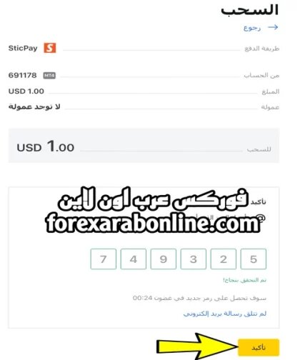 السحب من شركة exness بإستخدام Sticpay شرح بالفيديو السحب بإستخدام Sticpay من شركة exness يتم في دقائق علي الرغم من أن شركة اكسنس تقدم العديد من طرق السحب والايداع وبدون عمولات كذلك السحب يتم فوري أى أنه يتم فقط في ثواني معدودة. سابقاً قدمنا شرح بالفيديو عن كيفية الإيداع باستخدام محفظة Sticpay في شركة exness. ولكن ستشرح في هذه المقالة التعليمية بالفيديو السحب علي أحد البنوك الالكترونية وهو بنك Sticpay. طريقة السحب بإستخدام Sticpay من شركة exness قبل كل شيء ستجد في هذا القسم كل ما تريد معرفته عن شركة اكسنس شرح بالفيديو والصور لكل سؤال يخطر علي بالك. كذلك ستجد هنا كيفية فتح حساب تداول إسلامي والتحقق من الحساب كاملا في شركة exness. بالتأكيد أولاً علينا أن نعرف أنه يجب على المتداول أن يودع أولاً في شركة exness من خلال محفظة Stic pay. و أنه يجب سحب أصل مبلغ الإيداع بنفس طريقة الإيداع. بعد ذلك يستطيع المتداول سحب الأرباح بالطريقة التي تريدها من الوسائل المتعددة التي تقدمها شركة اكسنس. أولاً قم بتسجيل الدخول إلى مساحتك الشخصية في شركة اكسنس ، ثم قم بالنقر على كلمة السحب من القائمة الجانبية. بعد ذلك قم بالنقر على أيقونة Sticpay من قائمة خيارات السحب في الصفحة كما في الصورة التالية. https://irba7.com/upload/do.php?img=5461 اختار الحساب الذي ترغب في سحب الأموال منه كذلك عُملة السحب ثم اكتب المبلغ مع مراعاة أن الحد الأدنى هو واحد دولار فقط والحد الأقصى هو 10 آلاف دولار في كل عملية سحب. ثم قم بالنقر متابعة كما في الصورة التالية. https://irba7.com/upload/do.php?img=5462 بعد ذلك تنتقل إلى صفحة المراجعة فإذا كنت موافق على العملية قم بالنقر علي ايقونة تأكيد كما هو في الصورة التالية. https://irba7.com/upload/do.php?img=5463 بعد ذلك تنتقل إلى صفحة المراجعة فإذا كنت موافق على العملية قم بالنقر علي ايقونة تأكيد كما هو في الصورة التالية. https://irba7.com/upload/do.php?img=5465 بذلك تمت المعاملة وهي قيد المعالجة وفي خلال ثواني يصلك المبلغ الى حسابك محفظة ستيك باي كما هو موضح في الصورة التالية. https://irba7.com/upload/do.php?img=5466 فتح حساب اسلامي مع شركة EXNESS قناة الموقع على YouTube قناة الموقع على TikTok فيديو طريقة السحب من اكسنس عن طريق ستيك باي https://irba7.com/vb/newthread.php?do=newthread&f=15 |