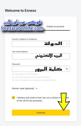 طريقة فتح حساب Standard ستاندرد في شركة exness شرح بالفيديو شرح بالصور والفيديو عن طريقة فتح حساب Standard ستاندرد في شركة exness. افضل شركات التداول في دقيقة واحدة على منصة ميتاتريدر 5. بالإضافة إلى ذلك ستجد في هذا القسم كل ما تريد معرفته عن شركة اكسنس شرح بالفيديو والصور لكل سؤال يخطر علي بالك. كيفية فتح حساب Standard ستاندرد في شركة exness https://irba7.com/upload/do.php?img=5595 فى البداية قم بالضغط على الرابط المباشر في شركة اكسنس. بعد ذلك قم بالنقر على كلمة كلمة Register إذا كانت صفحة المتصفح تظهر باللغة الانجليزية أو كلمة تسجيل اذا كانت صفحة المتصفح تظهر باللغة العربية. كما هو موضح بالصورة التالية. https://irba7.com/upload/do.php?img=5596 بعد ذلك تنتقل الى صفحة تسجيل البيانات و فيها اختار دولتك مع العلم انه لايمكن تغير بلد الاقامة فيما بعد والتي ستحدد لك أنظمة الدفع المتاحة من أجل السحب و الإيداع حسب بلدك. بعد ذلك اكتب عنوان البريد الإلكتروني الخاص بك ، وأخيراً اكتب كلمة المرور الخاصة بك مع مراعاة أن تتكون من حروف كبيرة وصغيرة وأرقام باللغة الانجليزية. ويجب أن تعلم أنك ستستخدم البريد الإلكتروني وكلمة المرور للدخول الى مساحتك الشخصية من متصفحات الويب ( اللاب توب او الكمبيوتر المكتبي ) أو الدخول إلى المساحة الشخصية عن طريق تطبيق exness trader. بعد ذلك قم بالتأشير على أنك لست مواطناً أمريكي أو مقيما في الولايات المتحدة وذلك للأغراض الضريبية. ثم قم بالنقر علي متابعة كما هو موضح في الصورة التالية. https://irba7.com/upload/do.php?img=5597 بعد النقر علي كلمة متابعة ستنتقل إلى صفحة ( exness ترمينال ) , ومن أعلى الصفحة انقر على ايقونة المربعات الصغيرة واختار منها كلمة مساحة التداول Trading Area كما هو موضح في الصورة التالية. https://irba7.com/upload/do.php?img=5598 بعد ذلك ستنتقل الى مساحتك الشخصية في شركة exness. وستجد في قسم حساباتي أنه تم فتح حساب تداول Standard ستاندرد حقيقي تلقائيا على منصة التداول MT5. بالإضافة إلى ذلك ستجد انه تم فتح حساب تجريبي علي منصة التداول MT5 ايضا في مساحتك الشخصية كما هو موضح في الصورة التالية. https://irba7.com/upload/do.php?img=5599 فيديو شرح طريقة عمل حساب تداول إسلامي في exness فتح حساب اسلامي مع شركة EXNESS الفيديو متاح على قناة الموقع على YouTube قناة الموقع على YouTube قناة الموقع على TikTok |