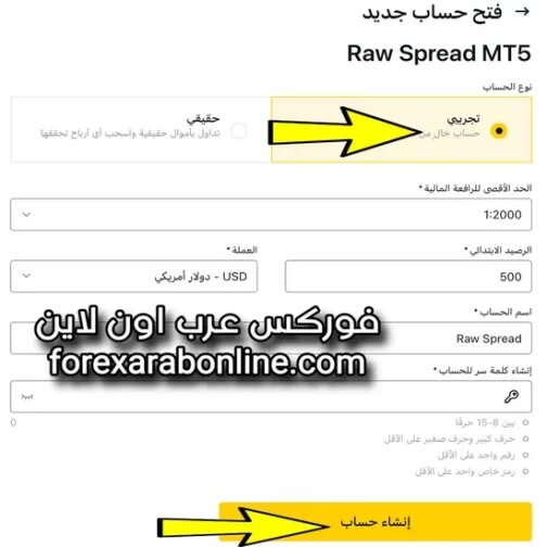 فتح حساب Raw Spread تجريبي في شركة exness شرح بالفيديو والصور شرح بالفيديو والصور طريقة فتح حساب Raw Spread تجريبي في شركة exness افضل شركات الفوركس من داخل المساحة الشخصية للمتداول في لحظات. سنقدم هذه الطريقة بإستخدام أجهزة الكمبيوتر التي تعمل بنظام الويندوز و IOS الديسك توب و أجهزة اللاب توب والأجهزة اللوحية. سابقاً قدمنا فتح حساب Standard تجريبي في شركة exness كذلك كيفية فتح حساب Pro تجريبي في شركة exness . قبل كل شيء ستجد في هذا القسم كل ما تريد معرفته عن شركة اكسنس شرح بالفيديو والصور لكل سؤال يخطر علي بالك. طريقة فتح حساب Raw Spread تجريبي في exness https://irba7.com/upload/do.php?img=5808 أولاً سجل الدخول إلى مساحتك الشخصية في شركة exness من هنا ومن قائمة حساباتي بعد ذلك قم بالنقر على كلمة فتح حساب جديد كما هو موضح في الصورة التالية. https://irba7.com/upload/do.php?img=5809 بعد ذلك اختار حساب حساب Raw Spread وهو متاح على منصة MetaTrader 4 كذلك متاح على منصة MetaTrader 5. ويمكنك من هنا المقارنة ومعرفة الفرق بين منصة MT4 ومنصة MT5 والاختلافات الأساسية بينهما. كذلك ستجد هنا مواصفات الرو سبريد كاملة. لذلك حدد المنصة وبعد ذلك أنقر على أيقونة متابعة كما هو موضح في الصورة التالية. https://irba7.com/upload/do.php?img=5810 تنتقل بعد ذلك ندخل علي إلى ضبط إعدادات الحساب حساب Raw Spread تجريبي الجديد مثل: إختيار نوع الحساب تجريبي كذلك اختار الحد الأقصى للرافعة المالية في exness. وعلمة حسابك ويفضل أن تكون الدولار الامريكي مع العلم انه هناك الكثير جداً من عملات الحساب المتوفرة في شركة اكسنس. كذلك قم بتعيين كلمة سر الحساب وهي التي تدخل بها إلى منصة ميتاتريدر وهي مختلفة عن كلمة سر الدخول إلى حسابك الشخصي في شركة اكسنس. مع العلم بأن تكون كلمة السر مكونة من 8 الي 15 ما بين حروف انجليزية صغيرة وكبيرة وأرقام و رموز. نصيحة خاصة للمتداولين المبتدئين عليك ان تختار مبلغ الحساب التجريبي والرافعة المالية مقاربة جدا لما سوف تتداول عليه بعد ذلك في الحساب الحقيقي. بعد ذلك قم بالنقر على كلمة إنشاء حساب كما هو موضح في الصورة التالية. https://irba7.com/upload/do.php?img=5811 بذلك تم فتح حساب Raw Spread تجريبي جديد من داخل مساحتك الشخصية في اكسنس وستصل إلى بريدك الإلكتروني رسالة بها تفاصيل حسابك. تهانينا ستجد الحساب الجديد ظهر في تبويب حساباتي في مساحتك الشخصية في ثواني كما هو موضح في الصورة التالية. https://irba7.com/upload/do.php?img=5812 فيديو فتح حساب الرو سبريد التجريبى فى اكسنس فتح حساب اسلامي مع شركة EXNESS الفيديو متاح على قناة اليوتيوب قناة الموقع على YouTube قناة الموقع على TikTok |