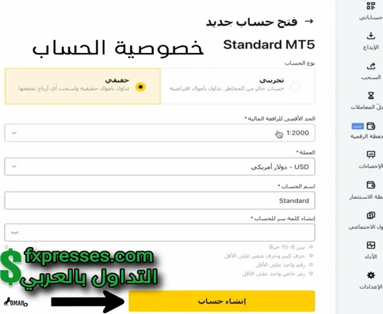 فتح حساب Standard في exness من مساحتك الشخصية شرح مصور وبالفيديو شرح مصور وبالفيديو طريقة فتح حساب Standard في شركة exness افضل شركة تداول من داخل المساحة الشخصية في دقيقة واحدة. ولكن هذه الطريقة ستكون من على أجهزة الكمبيوتر ( الديسك توب ) وكذلك اللاب توب والأجهزة اللوحية فقط . * فتح حساب Standard في exness من مساحتك الشخصية اولا قم بتسجيل الدخول إلي المساحة الشخصية الخاصة بك لدى شركة إكسنس. بعد ذلك سوف تقوم بالنقر على قائمة حساباتي ، كذلك قم بالنقر على كلمة فتح حساب جديد . والتي ستجدها في الجزء الأيسر من المساحة الشخصية الخاصة بنا في شركة Exness كما موضح في الصوره. https://irba7.com/upload/do.php?img=5829 سننتقل بعد ذلك إلى الصفحه التاليه وهي الصفحة التي سنختار منها نوع الحساب. مع العلم حساب standard متوفر على منصة MT4 كذلك أيضا متوفر على منصة MT5. بالإضافة إلي ذلك، بعد تحديد نوع المنصة المفضلة لديك سنقوم باختيار حساب standard. ثم قم بالنقر على كلمة متابعه التي توجد في اخر الصفحه كما هو موضح في الصورة التالية. https://irba7.com/upload/do.php?img=5827 بعد ذلك تنتقل*الى صفحة اعدادات الحساب ونختار منها حساب حقيقي كذلك ايضا نقوم بتحديد الرافعة المالية وتقوم بتحديد عمله الحساب ومن الأفضل أن تكون سنت امريكي وايضا نقوم بتحديد اسم الحساب او نقوم بتركه حسب الرغبة ونقوم ايضا بتعيين كلمة المرور والتي تكون مكونه من 8 الي 15 حرف كبير وصغير ورموز وأرقام وهذه هي الكلمة المستخدمة لتسجيل الدخول علي الحساب في المنصة لبدا التداول وليست خاصة بتسجيل الدخول إلى المساحة الشخصية الخاصة بك بعد ذلك ذلك نقوم بالنقر كلمة* انشاء الحساب كما هو موضح في الصورة https://irba7.com/upload/do.php?img=5828 بعد ذلك سوف يظهرلك الحساب في المساحة الشخصية الخاصة بك لدى شركة اكسنس كما هو موضح في الصورة تهانينا تم فتح حساب standard بنجاح في شركة Exness https://irba7.com/upload/do.php?img=5826 فيديو فتح حساب ستاندرد في اكسنس *فتح حساب اسلامي مع* شركة* EXNESS الفيديو متاح على قناة اليوتيوب قناة الموقع على*YouTube قناة الموقع على *TikTok أخيراً إذا كان الموضوع قد افادك فبرجاء المشاركة عبر ايقونات مواقع التواصل الاجتماعي ليستفيد الجميع. كذلك إن كان هناك اى استفسار عن كيفية فتح حساب Standard في exness من داخل المساحة الشخصية. فلا تتردد فى كتابته في مربع التعليقات وسنقوم بالرد عليه ونشره ان شاء الله مواضيع*ذات صلة فتح حساب تداول جديد من تطبيق exness trader شرح بالفيديو كيفية إعداد تطبيق exness trade شرح بالفيديو تداول البيتكوين والعملات الرقمية الكريبتو في شركة exness تجربة عملية للسحب الفورى من exness |
