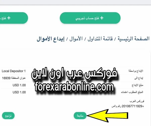 الايداع في شركة xs الأسترالية عن طريق المودع المحلي فوركس العرب شرح بالفيديو شرح بالفيديو والصور كيفية الايداع في شركة XS الأسترالية عن طريق المودع المحلي فوركس العرب ومدة التنفيذ وطريقة الاتصال مع المودع المحلي سابقاً قدمنا موقعنا فوركس عرب اون لاين طريقة السحب من XS عن طريق المودع المحلي فوركس العرب. كذلك قدمنا وسيلة التواصل معه وهي الواتس علي رقم 00201067711929 وعملية الإيداع لا تستغرق سوي دقائق معدودة فقط. طريقة السحب من XS عن طريق المودع المحلي فوركس العرب https://irba7.com/upload/do.php?img=5993 أولاً سجل الدخول إلى مساحتك الشخصية في شركة XS الأسترالية من هذا الرابط . بعد ذلك قم بالنقر علي ايقونة الأموال (Funds) من القائمة الجانبية عندها تظهر لك قائمة منسدلة. اختار منها سحب الأموال (Deposit Funds). او قم بالنقر من القائمة العلوية على ايقونة إيداع الأموال (Deposit Funds) كما هو موضح في الصورة التالية. https://irba7.com/upload/do.php?img=5994 بعد ذلك إختار محفظة التداول وبعد ذلك انقر على ايقونة Local Depositor ( المودع المحلى). وأخيراً قم بالنقر علي ايقونة متابعة (Continue) كما هو موضح في الصورة التالية. https://irba7.com/upload/do.php?img=5995 ثانياً قم بكتابة المبلغ الذي تريد إيداعه في محفظتك مع شركة شركة XS الأسترالية. وبعد ذلك قم بالنقر على كلمة Continue ( متابعة ) كما هو موضح في الصورة التالية. https://irba7.com/upload/do.php?img=5996 أخيراً تنتقل إلى صفحة مراجعة عملية الايداع في شركة XS الأسترالية وتظهر لك فيها مبلغ الإيداع وأيضاً وسيلة الإيداع. وهي عن طريق المودع المحلي فوركس العرب وستجد وسيلة التواصل معه وهي رقم الواتس. وهنا أُذكر بكل تأكيد أنه يجب أن تتواصل مع المودع المحلى أولاً قبل إتمام عملية الإيداع لسرعة تنفيذ العملية. ولكن إذا كنت ترغب في تعديل أى شئ قم بالنقر على كلمة تراجع ( Back ) وإذا كنت راضىً عن المعاملة قم بالنقر على كلمة Continue ( متابعة ) كما هو موضح في الصورة التالية. https://irba7.com/upload/do.php?img=5997 بعد ذلك ستجد أنه ظهر مبلغ الإيداع في محفظتك بعد التواصل مع المودع المحلي فوركس العرب. تهانينا بذلك تمت عملية الإيداع في شركة XS عن طريق المودع المحلي فوركس العرب بنجاح. https://irba7.com/upload/do.php?img=5998 نبذة عن الشركة الأسترالية XS تقدم شركة XS الأسترالية العديد من حسابات التداول التي تناسب جميع المتداولين سواء المتداولين المحترفين أو المتداولين المبتدئين. هذه الحسابات هي حساب Cent، حساب ميكرو ، حساب Standard، حساب Elite، حساب Pro، حساب VIP، حساب Extra، وأخيرً حساب Classic. كما وأن شركة XS الأسترالية حاصلة علي أقوى وأفضل التراخيص من الهيئات الرقابية. مثل الترخيص البريطاني FCA, والترخيص القبرصي Sysec, كذلك ترخيص جمهورية سيشل وتراخيص أخرى. فيديو الإيداع عن طريق المودع المحلي في الشركة الأسترالية XS فتح حساب إسلامي في الشركة الأسترالية XS فيديو شرح طريقة الايداع في شركة XS الأسترالية عن طريق المودع المحلي فوركس العرب https://www.youtube.com/watch?v=5-ppauWv9vg قناة الموقع على YouTube قناة الموقع على TikTok |