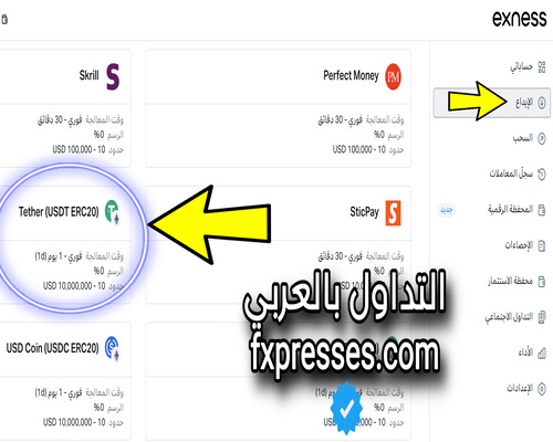 كيفية الايداع في exness بعملة USDT) ERc20) بالطريقة الحديثة شرح بالصور والفيديو كيفية الايداع في exness بعملة USDT) ERc20) بالطريقة الصحيحة والمبلغ يصل إلى حسابك في ثواني. عملة usdt Erc20 من أشهر العملات الرقمية التي تستخدم في طرق السحب والايداع في شركة exness. كذلك هي الاكثر شيوعاً بين المتداولون على نطاق واسع في المعاملات المالية. تم شرح ايضاً الايداع في Exness بعملة USDT) TRc20). كذلك سابقاً تم شرح كيفية الإيداع في exness باستخدام محفظة Binance Pay. كذلك الإيداع في exness باستخدام البطاقات البنكية. مع العلم ايضاً ستجد في هذا القسم كل ما تريد معرفته عن شركة اكسنس شرح بالفيديو والصور لكل سؤال يخطر علي بالك. الايداع في Exness بعملة USDT) ERc20) في ثلاث خطوات اولاً : قم بتسجيل الدخول إلى مساحتك الشخصية في شركة اكسنس سواء من جهاز الكمبيوتر أو من الهاتف المحمول. بعد ذلك قم بالنقر على أيقونة الإيداع من قسم القائمة الجانبية. ثم قم بالضغط على أيقونة عملة usdt erc20 من خيارات الإيداع المتعددة في اكسنس. وهذه هي أيقونة العملة المقصودة كما هو موضح الصورة التالية. https://irba7.com/upload/do.php?img=6132 ثانياً : قم باختيار الحساب الذي تريد إيداع الأموال فيه ثم اضغط علي ايقونة متابعة. مع مراعاة أن الحد الأدنى في الإيداع هو 10 دولار والحد الأقصى هو مليون دولار في العملية الواحدة كما هو موضح في الصورة التالية. https://irba7.com/upload/do.php?img=6133 ثالثاً واخيراً : تنتقل الى صفحة نسخ عنوان محفظة شركة exness سواء عن طريق مسح رمز الإستجابة QRCode أو نسخ الادرس الخاصة بشركة اكسنس كما هو موضح في الصورة التالية. قم بنسخ عنوان المحفظة او مسح كيو آر كود ثم توجه الى محفظتك أو المحافظ الأخري و وضع عنوان محفظة اكسنس وقم بالتحويل. https://irba7.com/upload/do.php?img=6134 بذلك تمت المعاملة وفي خلال ثواني يصلك المبلغ الى حساب التداول في exness الخاصة بك. فتح حساب اسلامي مع شركة EXNESS قناة الموقع على YouTube قناة الموقع على TikTok أخيراً إذا كان الموضوع قد افادك فبرجاء المشاركة عبر ايقونات مواقع التواصل الاجتماعي ليستفيد الجميع. كذلك إن كان هناك اى استفسار عن كيفية الايداع في Exness بعملة USDT) ERc20) في ثلاث خطوات. فلا تتردد فى كتابته فى مربع التعليقات وسنقوم بالرد عليه ونشره ان شاء الله , والتأكد من الرد على تعليقك قم بالتأشير على المربع قبل الضغط على إرسال التعليق. |