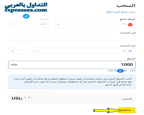 كيفية السحب من exness إلى بنك Perfect Money شرح بالصور و الفيديو كيفية السحب من exness إلى بنك Perfect Money في (3) ثلاث خطوات على حسابك في شركة اكسنس . مع العلم ايضاً ستجد في هذا القسم كل ما تريد معرفته عن شركة اكسنس شرح بالفيديو والصور لكل سؤال يخطر علي بالك. كذلك تم سابقاً شرح الايداع في exness بإستخدام بنك Perfect Money. شرحنا ايضاً من قبل الايداع في Exness بعملة USDT) TRc20)، كذلك الايداع في exness بعملة USDT) ERc20). كيفية السحب من exness إلى بنك Perfect Money اولاً : قم بتسجيل الدخول إلى مساحتك الشخصية في شركة اكسنس سواء من جهاز الكمبيوتر أو من الهاتف المحمول. بعد ذلك قم بالنقر على أيقونة السحب من قسم القائمة الجانبية. ثم قم بالضغط على أيقونة بنك Perfect Money من خيارات السحب المتعددة في اكسنس. وهذه هي أيقونة البنك الالكتروني المقصودة كما هو موضح الصورة التالية https://irba7.com/upload/do.php?img=6167 ثانياً : قم باختيار الحساب الذي تريد سحب الأموال منه ثم اضغط علي ايقونة متابعة. مع مراعاة أن الحد الأدنى للسحب هو 10 دولار والحد الأقصى هو 100 ألف دولار في العملية الواحدة ثم اضغط متابعة كما هو موضح في الصورة التالية. https://irba7.com/upload/do.php?img=6169 ثالثاً : بعد ذلك تنقلك شركة اكسنس إلى صفحة ملخص عملية السحب في حسابك ، ثم قم بالضغط علي ايقونة تأكيد كما موضح في الصورة التالية. https://irba7.com/upload/do.php?img=6166 رابعاً واخيراً : عندها سيتم إرسال رمز التحقق إلى الهاتف أو البريد الالكتروني ، وذلك حسب وسيلة الحماية التي اخترتها عند فتح الحساب. قم بكتابة رمز الحماية في صفحة السحب ثم قم بالنقر على تأكيد كما موضح في الصورة التالية. https://irba7.com/upload/do.php?img=6165 بذلك تمت المعاملة وهي قيد المعالجة وفي خلال ثواني يصلك المبلغ الى حسابك في بنك بيرفكت موني. فتح حساب اسلامي مع شركة EXNESS قناة الموقع على YouTube قناة الموقع على TikTok أخيراً إذا كان الموضوع قد افادك فبرجاء المشاركة عبر ايقونات مواقع التواصل الاجتماعي ليستفيد الجميع. كذلك إن كان هناك اى استفسار عن كيفية السحب من exness إلى بنك Perfect Money. فلا تتردد فى كتابته فى مربع التعليقات وسنقوم بالرد عليه ونشره ان شاء الله , والتأكد من الرد على تعليقك قم بالتأشير على المربع قبل الضغط على إرسال التعليق. مقالات ذات صلة مقرات شركة exness ومكاتبها حول العالم تقييم شركة Exness بكل المعلومات المؤكدة عنها حسابات شركة Exness والمقارنة بين هذه الحسابات |