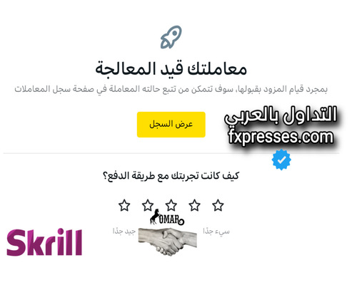 السحب من شركة Exness بإستخدام بنك Skrill بتجربة عملية شرح بالصور و الفيديو كيفية السحب من شركة Exness بإستخدام بنك Skrill في (3) ثلاث خطوات على حسابك في الشركة. سابقاً تم شرح في موقعنا التداول بالعربي طريقة الإيداع في Exness بإستخدام بنك Skrill والعمولة ومدة التنفيذ. كذلك تم شرح كيفية الايداع في exness بإستخدام Perfect Money ايضاً السحب من exness إلى بنك Perfect Money. مع العلم ايضاً ستجد في هذا القسم كل ما تريد معرفته عن شركة اكسنس شرح بالفيديو والصور لكل سؤال يخطر علي بالك. كيفية السحب من شركة Exness بإستخدام بنك Skrill https://irba7.com/upload/do.php?img=6190 اولاً : قم بتسجيل الدخول إلى مساحتك الشخصية في شركة اكسنس سواء من جهاز الكمبيوتر أو من الهاتف المحمول. بعد ذلك قم بالنقر على أيقونة السحب من قسم القائمة الجانبية. ثم قم بالضغط على أيقونة بنك سكريل من خيارات السحب المتعددة في اكسنس. وهذه هي أيقونة البنك الالكتروني المقصودة كما هو موضح الصورة التالية https://irba7.com/upload/do.php?img=6185 ثانياً : قم باختيار الحساب الذي تريد سحب الأموال منه ثم اضغط علي ايقونة متابعة. مع مراعاة أن الحد الأدنى للسحب هو 10 دولار والحد الأقصى هو 12 ألف دولار في العملية الواحدة ثم اضغط متابعة كما هو موضح في الصورة التالية. https://irba7.com/upload/do.php?img=6186 ثالثاً : بعد ذلك تنقلك شركة اكسنس إلى صفحة ملخص عملية السحب في حسابك ، ثم قم بالضغط علي ايقونة تأكيد كما موضح في الصورة التالية. https://irba7.com/upload/do.php?img=6192 رابعاً : سيتم إرسال رمز التحقق إلى الهاتف أو البريد الالكتروني ، وذلك حسب وسيلة الحماية التي اخترتها عند فتح الحساب. قم بكتابة رمز الحماية في صفحة السحب ثم قم بالنقر على تأكيد كما موضح في الصورة التالية. https://irba7.com/upload/do.php?img=6187 ذلك تمت المعاملة وهي قيد المعالجة وفي خلال ثواني يصلك المبلغ الى حسابك في بنك Skrill كما هو موضح في الصورة التالية. https://irba7.com/upload/do.php?img=6189 فتح حساب اسلامي مع شركة EXNESS قناة الموقع على YouTube قناة الموقع على TikTok أخيراً إذا الموضوع قد افادك فبرجاء المشاركة عبر ايقونات مواقع التواصل الاجتماعى ليستفيد الجميع. كذلك إن كان هناك اى استفسار عن السحب من شركة Exness بإستخدام بنك Skrill. فلا تتردد فى كتابته فى مربع التعليقات وسنقوم بالرد عليه ونشره ان شاء الله , والتأكد من الرد على تعليقك قم بالتأشير على المربع قبل الضغط على إرسال التعليق. |