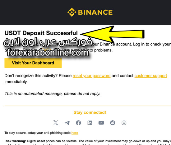 كيفية السحب من شركة XS الأسترالية بعملة usdt شرح بالفيديو شرح بالفيديو والصور كيفية السحب من شركة XS الأسترالية بعملة usdt في دقيقة واحدة وما هو الحد الأدنى والحد الأقصى ومدة تنفيذ المعاملة. في البداية علينا أن نضيف رقم المحفظة (الأدرس) الخاص بعملة USDT فى وسائل السحب من الشركة الأسترالية XS. وهنا ستجد شرح بالفيديو عن كيفية إضافة عملة usdt للسحب من شركة XS الأسترالية. طريقة السحب من شركة XS الأسترالية بعملة usdt سيتم تطبيق هذه الطريقة بإستخدام أجهزة الكمبيوتر المكتبي أو اللاب توب أو الأجهزة اللوحية التابلت والتي تعمل بنظام الويندوز أو نظام IOS أولاً سجل الدخول إلى حسابك في شركة XS الأسترالية من هذا الرابط بعد ذلك عليك كتابة البريد الإلكتروني وكلمة المرور وأخيراً أنقر على أيقونة تسجيل الدخول كما هو موضح في الصورة التالية. https://irba7.com/upload/do.php?img=6328 وبعد تسجيل الدخول إلى مساحتك الشخصية في شركة XS الأسترالية قم بالنقر علي ايقونة الأموال من القائمة الجانبية على يمين الصفحة. ثم بعد ذلك قم بالنقر على أيقونة سحب الأموال كما هو موضح في الصورة التالية. https://irba7.com/upload/do.php?img=6329 عند ذلك تنتقل إلى صفحة السحب وعليك الإنتباه في الخطوات الآتية بالترتيب التالى. 1- إختار محفظة الحساب الذي ترغب في السحب منه. 2- قم بالنقر على أيقونة العملات الرقمية من الخيارات المتعددة التي توفرها شركة أكس أس الأسترالية في وسائل السحب. 3- عليك أن تختار رقم المحفظة (الأدرس) الخاص بعملة USDT وهي من نوع تيثر trc20. 4- أخيراً بعد ذلك قم بالنقر علي أيقونة متابعة كما هو موضح في الصورة التالية. ملاحظة هامة : عليك التأكد من هذه البيانات لأنه لا يمكن التراجع عنها. https://irba7.com/upload/do.php?img=6330 بعد ذلك قم بكتابة المبلغ الذي تريد سحبه من حسابك في شركة XS الأسترالية. مع العلم بأن الحد الأدنى لمبلغ السحب هو 10 دولار و الحد الأقصى لمبلغ السحب هو 250 ألف دولار. وبعد ذلك قم بالنقر على أيقونة متابعة كما هو موضح في الصورة التالية. https://irba7.com/upload/do.php?img=6331 مراجعة عملية السحب من حسابك في شركة إكس إس أخيراً تنتقل إلى صفحة المراجعة وفيها تجد رقم حسابك الذي تم السحب منه. كذلك ستجد مبلغ السحب ورقم المحفظة (usdt trc20) التي تم السحب عليها. إذا كنت ترغب في تعديل أى شئ قم بالنقر على تراجع ولكن إذا كنت راضىً عن المعاملة قم بالنقر علي متابعة كما هو موضح في الصورة التالية. https://irba7.com/upload/do.php?img=6332 بذلك تمت عملية السحب وهي قيد المعالجة وفي خلال 15 دقيقة بحد أقصى يصلك مبلغ السحب. ولكن إذا كنت ترغب في إلغاء عملية السحب عليك النقر علي أيقونة إلغاء السحب فوراً كما هو موضح في الصورة التالية. https://irba7.com/upload/do.php?img=6333 في حالة السحب التى قمت أنا بها وصلني مبلغ السحب بعد أقل من 5 دقائق فقط كما هو موضح في الصورة التالية. https://irba7.com/upload/do.php?img=6334 فيديو عملي كيفية السحب من شركة XS الأسترالية بعملة usdt فتح حساب إسلامي في الشركة الأسترالية XS وسائل الإتصال بنا وقنواتنا على مواقع التواصل الإجتماعى |
