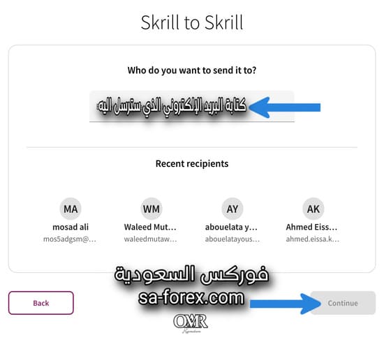 طريقة ارسال الاموال من حساب الي اخر داخل بنك سكريل شرح بالصور والفيديو كيفية التحويل بين الحسابات داخل بنك Skrill والمقارنة بين الحسابات من حيث الرسوم والحد الاقصى. سابقاً تم شرح كيفية التسجيل في بنك skrill المتميز الاكثر شيوعاً و الاكثر استخدام بين المتداولين. وفى هذة المقالة سيتم شرح كيفية التحويل بين الحسابات داخل بنك سكريل. في البداية اقدم لكم افضل شركات التداول المرخصة من الهيئات الرقابية والتي تم التأكد من مصداقيتها وشفافيتها من خلال تجربة المتداولين. اولاً : شركة FBS وهي من اكبر الشركات الرائدة في مجال التداول. ثانياً : شركة EXNESS وهي من اكبر شركات الفوركس. ثالثاً : شركة XS وهي اكبر شركات التداول. رابعاً : شركة IC Markets الغنية عن التعريف. ملحوظة إن كل ما أهتم به هو أن إلا لا تتعرض للنصب كمتداول من اي شركة تداول وهمية. لذلك أقوم بالبحث والتحري بدقة عن افضل شركات التداول المرخصة والموثوقة. بالإضافة إلي ذلك أقدمها لكم مع مواد وكتب تعليمية اعتقد انها تفيد الجميع. طريقة التحويل بين الحسابات داخل بنك Skrill https://irba7.com/upload/do.php?img=6448 اولاً : قم بتسجيل الدخول إلي حسابك الشخصي من هذا الرابط في البنك WWW.SKRILL.COM. وبعد ذلك يظهر لك الصفحة الرئيسية لحسابك وعلى يسار الصفحة قم بالنقر على كلمة TRANSFER. كذلك تدخل إلى صفحة التحويلات إختار منها SKRILL TO SKRILL كما هو موضح فى الصورة التالية. https://irba7.com/upload/do.php?img=6449 ثانياً : بعد ذلك تقوم بكتابة البريد الالكتروني الذي سترسل اليه الاموال ثم قم بالضغط على ايقونة Continue كما هو موضح فى الصورة التالية. https://irba7.com/upload/do.php?img=6450 ثالثاً : عليك بكتابة مبلغ التحويل ثم قم بالضغط على ايقونة Continue كما هو موضح فى الصورة التالية. https://irba7.com/upload/do.php?img=6451 رابعاً : تنتقل بعد ذلك إلي صفحة مراجعة إرسال الأموال من حساب الى اخر فى Skrill. إذا كنت تريد تغيير أى شئ قم بالنقر علي كلمة Back ولكن إذا كنت راضىً عن المعاملة قم بالنقر على ايقونة Continue كما هو موضح فى الصورة التالية. https://irba7.com/upload/do.php?img=6452 خامساً و اخيراً : قم بإدخال رمز PIN البن كود وقم بالنقر علي ايقونة Confirm كما هو موضح فى الصورة التالية. https://irba7.com/upload/do.php?img=6453 المقارنة بين الحسابات من حيث الرسوم والحد الاقصى يجب ان نعلم ان رسوم التحويل بين الحسابات داخل بنك سكريل تبلغ 2.99% وبدون حد أقصى وذلك في الحسابات العادية. ولكن الحسابات التي تم التحقق منها فتكون رسوم التحويل بين الحسابات 1.45٪. وأخيراً حسابات VIP هي بدون عمولة صفر رسوم. نصيحة مهمة جداً ، لا تستلم أي مبلغ على حسابك في بنك سكريل إلا ممن تثق فيهم حتى لا يتعرض حسابك للحظر بسبب الأموال السبام من بطاقات أو الأموال المسروقة. في الختام إذا كنت تواجه أي صعوبات فيمكنك التواصل معنا عبر وسائل التواصل الاجتماعي. اضغط هنا [/URL][UR/"]https://sa-forex.com/xs-review/[/URL] هذة قناة الموقع على YouTube وهذة قناة الموقع على TikTok أخيراً إذا كان الموضوع قد افادك فبرجاء المشاركة عبر ايقونات مواقع التواصل الاجتماعي ليستفيد الجميع. كذلك إن كان هناك اى استفسار عن طريقة التحويل بين الحسابات داخل بنك Skrill. فلا تتردد فى كتابته فى مربع التعليقات وسنقوم بالرد عليه ونشره ان شاء الله. والتأكد من الرد على تعليقك قم بالتأشير على المربع قبل الضغط على إرسال التعليق. مقالات مفيدة تقييم شركة Exness بكل المعلومات المؤكدة عنها وهل هي موثوقة تقيم FBS وكل المعلومات المؤكدة عنها من خلال تجربة المتداولين تقييم شركة XS الأسترالية بكل المعلومات المؤكده عنها وهل هي موثوقة |