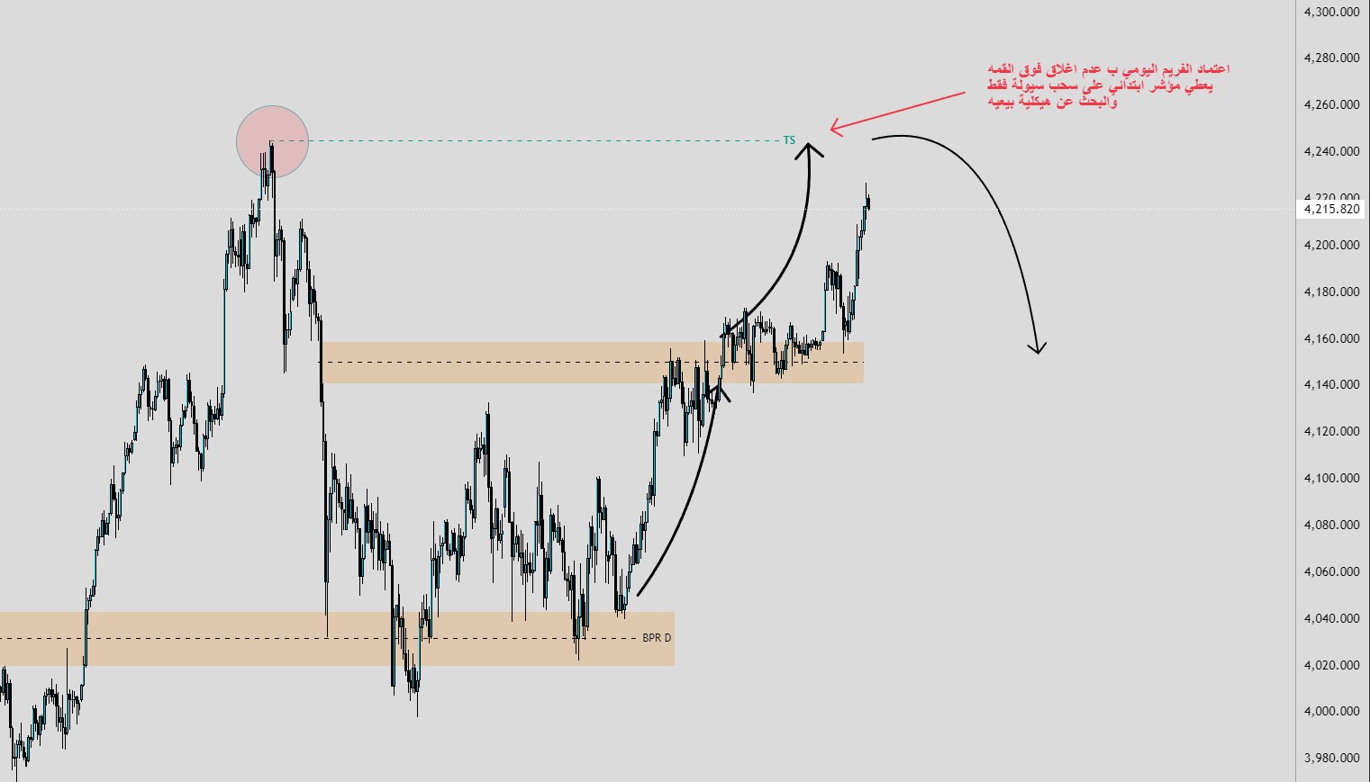 بالنسبة للذهب بالنسبة للذهب السعر مازال ماشي على تحليل الأسبوع السابق حددنا منطقة 4040- 4020 وانتظرنا هيكلية عندها للشراء بإستهداف أولي لمنطقة 4140-4160 والبيع منها في حال تكون هكيلية بيعية السعر اعطى ارتدادات جيدة للمضاربة من عندها لكن لم تكن بهيكلية مقنعة لتغير الأتجاه لذلك أستمر السعر بالصعود بأتجاه الهدف الثاني المحدد له وهو قمة 4245. أما الآن، فالصورة لبداية الأسبوع والشهر واضحة: نفس القمة هي محور المتابعة. الأهم هو مراقبة الإغلاق فوقها أو دونه، واعتماد المعطيات اليومية الي راح نتابعها بتفاصيلها بالمساحة القادمة ان شاء الله. تمنياتي للجميع بتداولات موفقة https://irba7.com/upload/do.php?img=6687 إكس إس الخيار الأفضل للمتداولين https://my.xs.com/ar/links/go/137 ------------- لمتابعة أَخبار الأَسهم والذهب والعملات إِنضم للقناة من الرابط https://t.me/forexso3di |